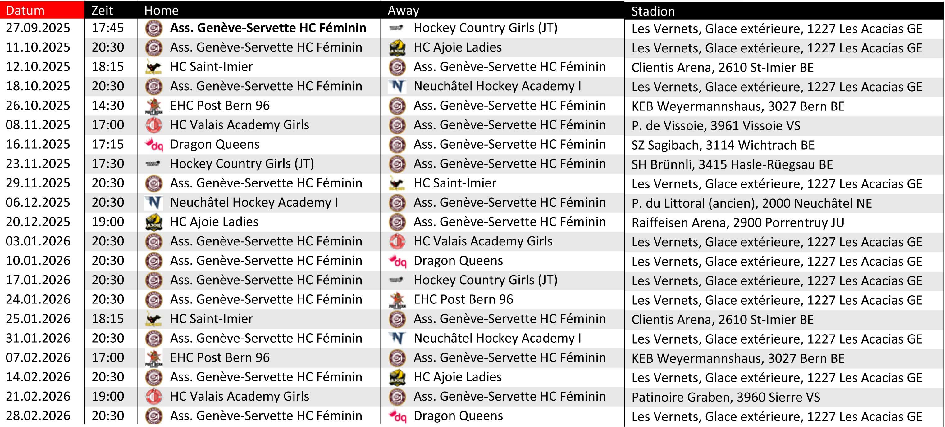 L'équipe est engagée sur 2 compétitions ; la Swiss Women Hockey Ligue C et la Coupe Nationale.