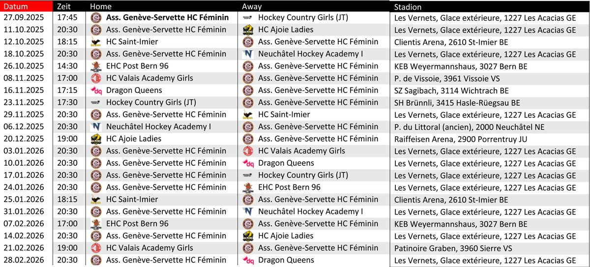 L'équipe est engagée sur 2 compétitions ; la Swiss Women Hockey Ligue C et la Coupe Nationale.